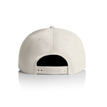 Plastic snapback, tonal under-peak lining, stitching eyelets, self fabric dome at top